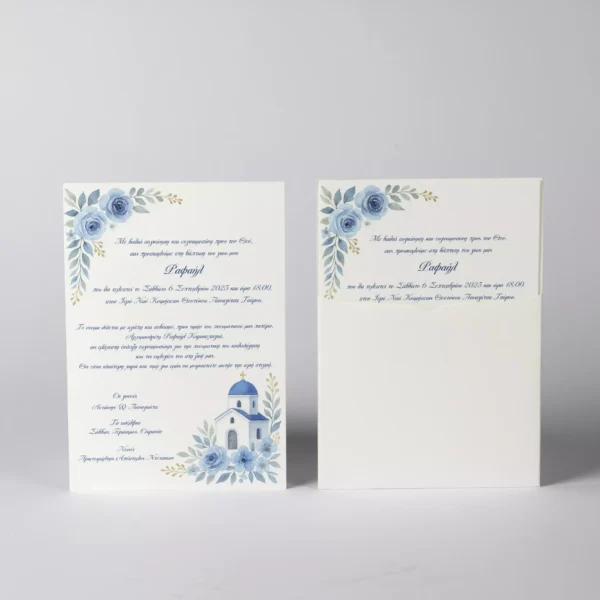 Προσκλητήριο βάπτισης με γαλάζιο εκκλησάκι