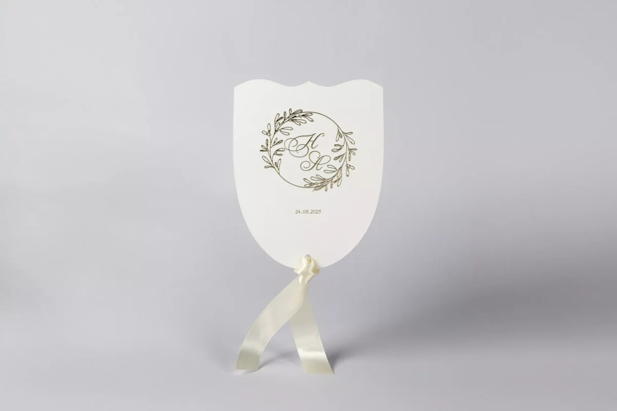 Βεντάλια με χρυσοτυπία στα κλαδιά και στα μονογράμματα
