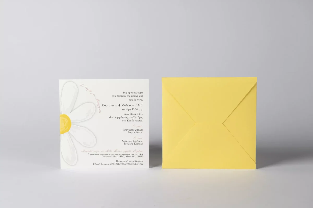 Προσκλητήριο βάπτισης με θέμα την μαργαρίτα