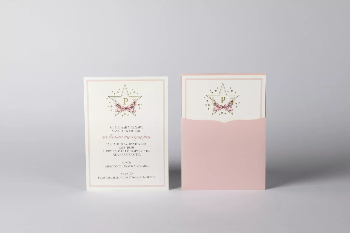 Προσκλητήριο βάπτισης με θέμα το αστέρι χρυσοτυπία