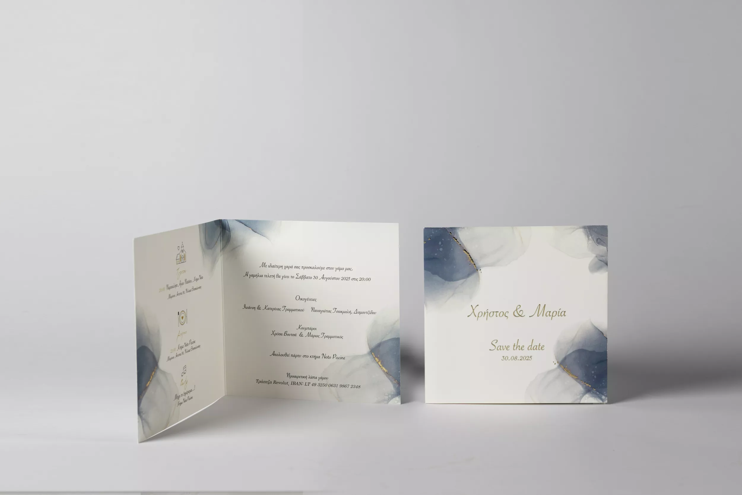 Προσκλητήριο γάμου δίπτυχο με χρυσοτυπία