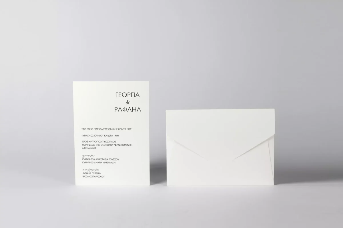 Προσκλητήριο γάμου μίνιμαλ με ανάγλυφα ονόματα